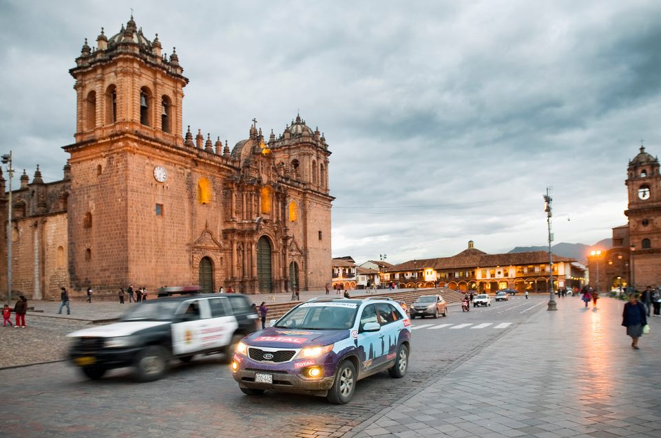 Podíamos dizer que Cuzco nos encanta tanto que não temos vontade de partir e não mentíamos, pois ainda estamos nesta cidade, realmente linda. Esta manhã, levámos o Kia Sorento 4WD ao concessionário local para fazer a primeira inspecção de serviço e como a viatura somente nos foi entregue após o almoço, decidimos não arriscar avançarmos tão tarde para as paragens da Amazónia. Assim, tirámos mais uma bela folga e visitámos tranquilamente esta cidade monumental, onde a história espreita a cada esquina, em edifícios magníficos da arquitectura colonial espanhola. Caminhámos sem rumo durante algumas horas por ruas, ruelas e grandes praças, num passeio intervalado por um almoço surpreendente e por dois “descansos” no café. A surpresa do almoço foi servirem-nos uns rojões de porco verdadeiramente deliciosos, bem fritos, quase crocantes por fora! A conta foi outra boa surpresa: nove euros por dois almoço, acompanhados com água mineral (embora aqui a água da torneira seja tão boa que a bebemos normalmente, mesmo que isso choque os americanos nas mesas em redor…) e uma garrafa de Inka Kola, o refrigerante nacional do Perú. Trata-se de uma gasosa amarela, doce e com vago sabor a lima. Satisfizemos a curiosidade, mas não ficámos clientes. Ficámos sim foi fãs da Plaza de Armas de Cuzco, lindíssima com a sua Catedral, com a Igreja dos Jesuístas ao lado, e todas as arcadas que ao entardecer fervilham de vida. Encostado a uma coluna destas arcadas, olhava apenas o movimento quando um miúdo me puxou pelas calças e me perguntou se podia cantar. Andava a juntar para comprar uns sapatos novos e propôs cantar-me uma canção popular em Quechua, a língua dos andinos, a troco de uma moeda. Só eu o contratei, mas quando cantou, houve mais quem parasse para ouvir. E seguir assim que o miúdo estendeu a mão. Eu paguei pelos outros. Ele mereceu!