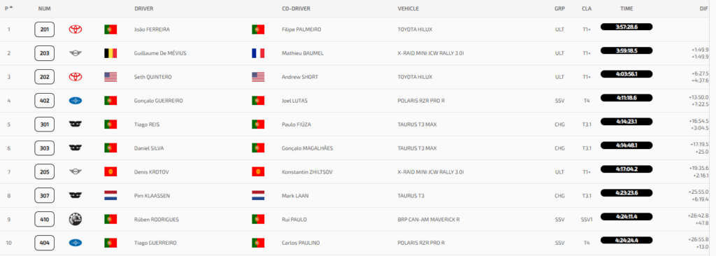 Mas se a vitória de Ferreira foi brilhante, o verdadeiro feito da prova pertenceu a Gonçalo Guerreiro. Ao volante do Polaris RZR Pro R, um veículo da categoria SSV/T4, o piloto português não só venceu todas as especiais da sua classe como se intrometeu entre os gigantes da categoria Ultimate, terminando num impressionante 4º lugar da geral. Um resultado que desafia todas as expectativas e que coloca Guerreiro como um dos nomes mais promissores do todo-o-terreno nacional e internacional.